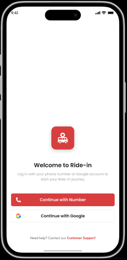 Ride-in app for ride booking where users can book their rider through the app and manage ride-related actions.