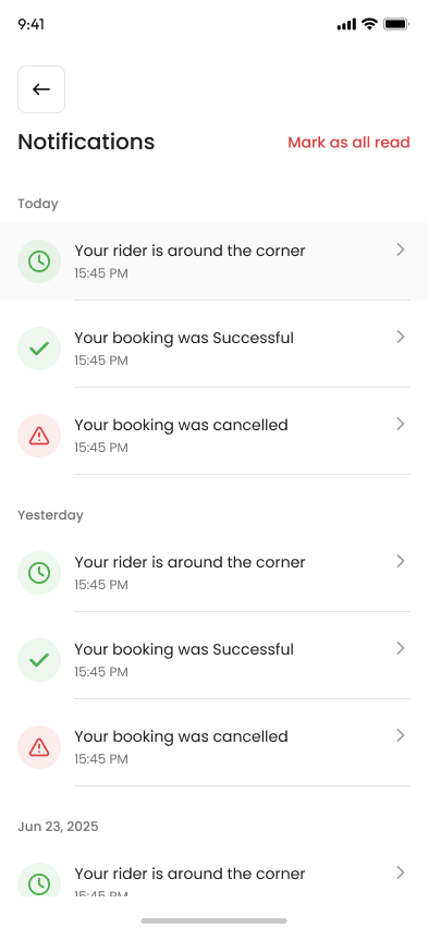 A ride-booking app where users can book riders and manage their trips through a simple mobile experience.